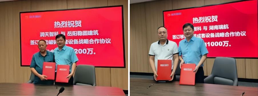 在岳陽縣委副書記、縣長吳光文,岳陽高新技術產業(yè)園管委會書記姚正大,岳陽高新技術產業(yè)園管委會主任周年等領導的見證下,潤天智科分別與岳陽穩(wěn)固建筑材料有限公司、全源建筑工程有限公司及湖南瑞航工程機械設備有限公司達成長期戰(zhàn)略合作協(xié)議,并簽訂首批移動破碎設備采購訂單,首批合作金額共計3700萬元。