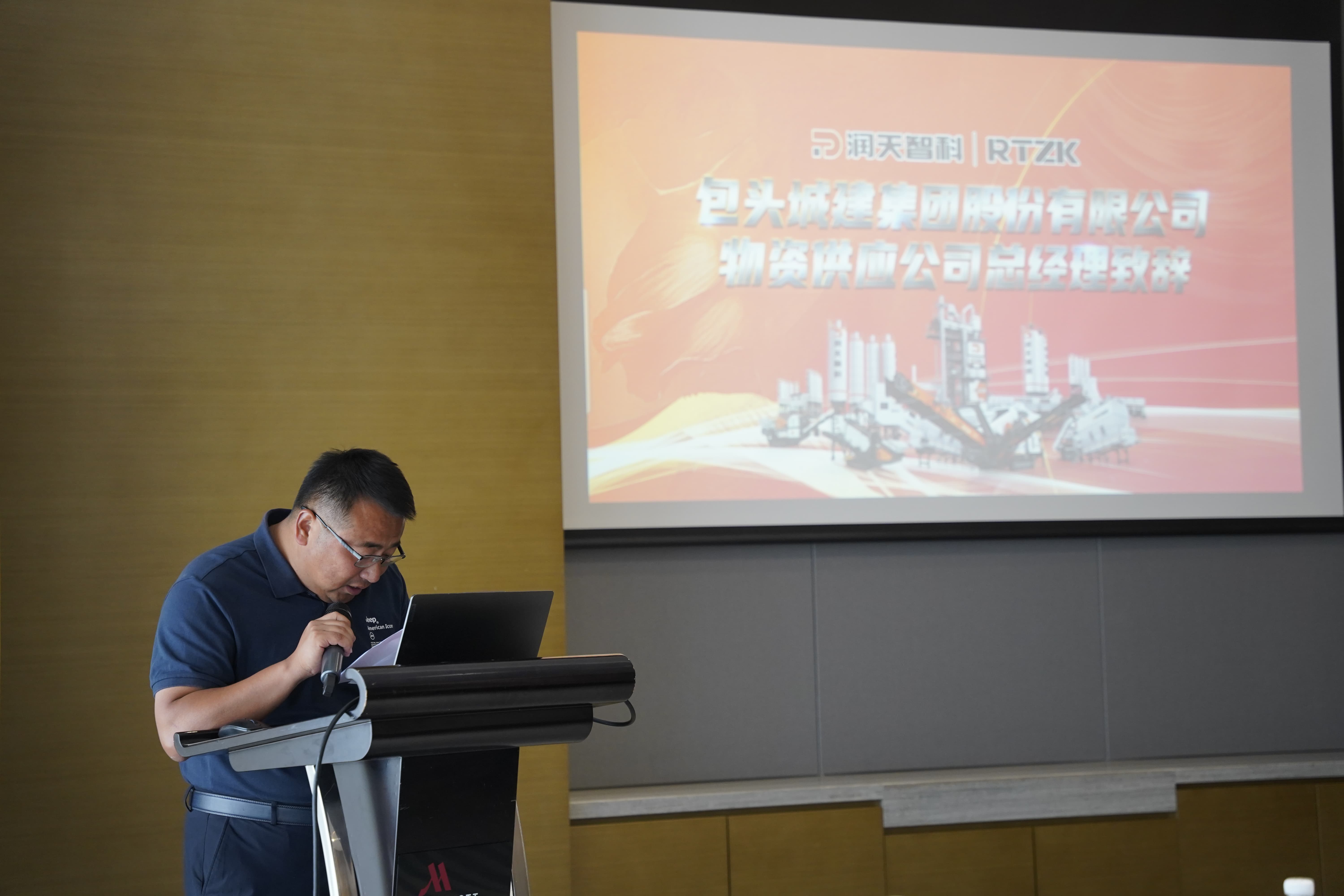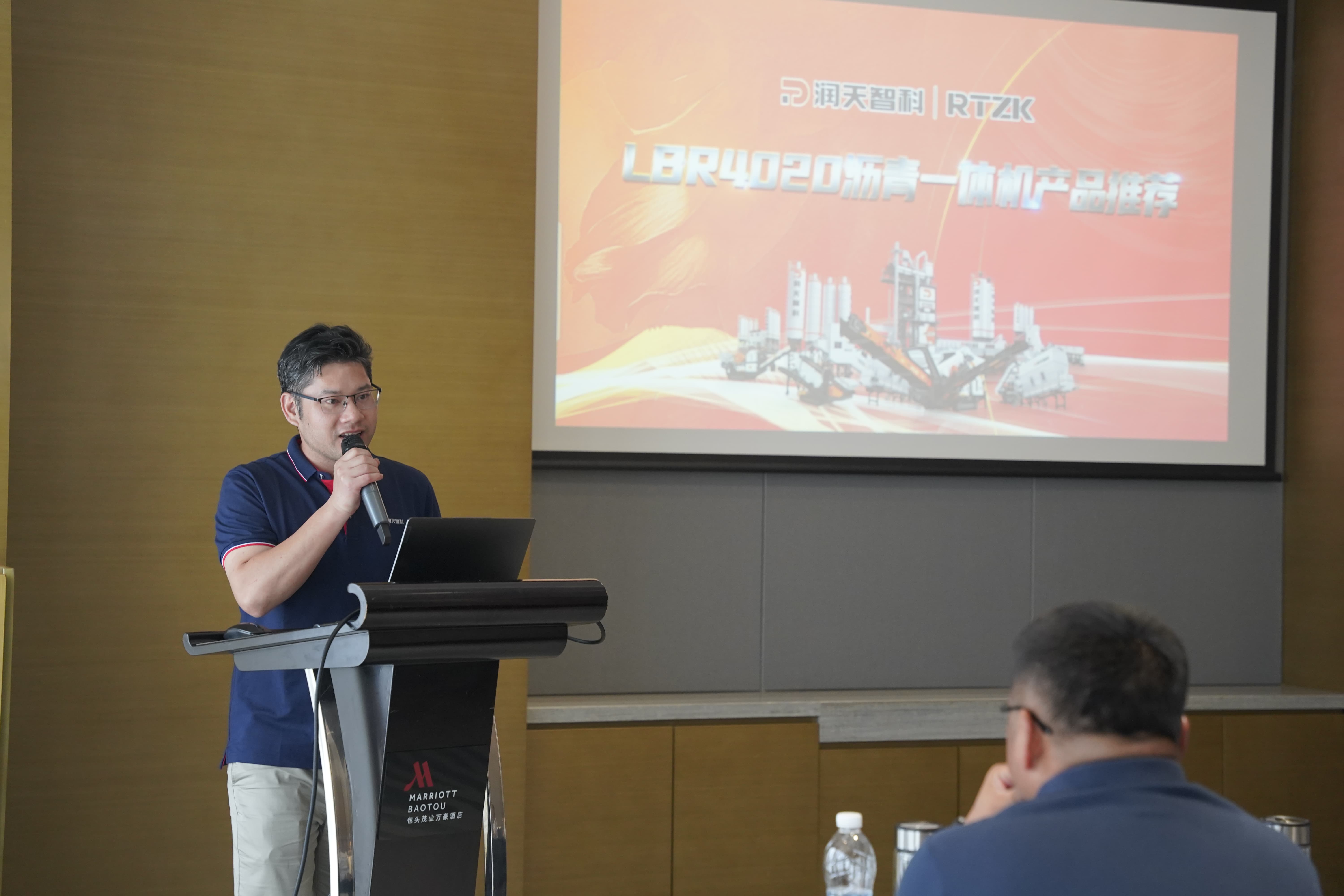 潤天智科董事長張?jiān)B氏戎罗o,擲地有聲地描繪企業(yè)藍(lán)圖:"深耕行業(yè)22載,潤天智科以百人專家團(tuán)隊(duì)、10萬㎡產(chǎn)業(yè)基地和100+國家專利,鑄就混凝土攪拌、瀝青再生等四大領(lǐng)域技術(shù)壁壘!"他著重分享了LBR4020的產(chǎn)品品質(zhì):模塊化設(shè)計(jì)實(shí)現(xiàn)1個(gè)月極速安裝投產(chǎn)。