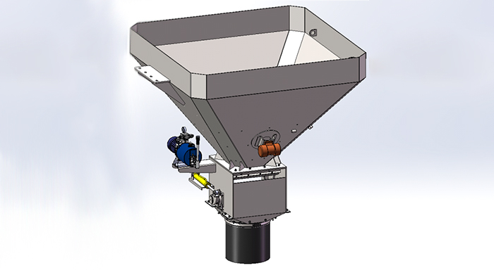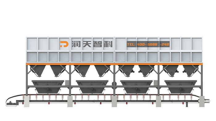 配料系統(tǒng) 大尺寸圍板,儲料多; 內(nèi)振式破拱裝置,下料順暢; 雙開式料門,料不跑偏; 機架采用大尺寸厚壁方管,結(jié)構(gòu)扎實。 |