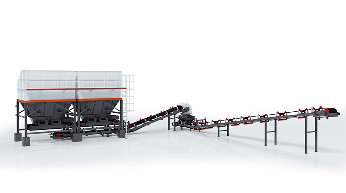 | 冷料系統(tǒng) 單倉容積12m3,采用內(nèi)振式結(jié)構(gòu),振動幅度大,保證卸料流暢。 給料皮帶機(jī)采用變頻+門開度控制給料,保證初級配的穩(wěn)定。 配有缺料報警裝置。 冷料倉頂部配有格柵裝置,剔除大塊物料。  |