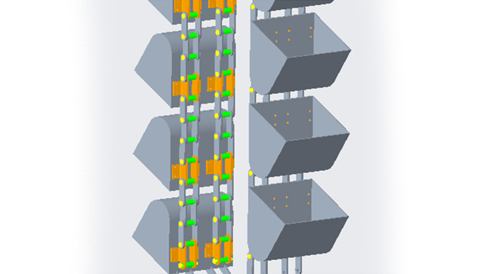 | 提升系統(tǒng) 板鏈?zhǔn)教嵘龣C(jī),板鏈不易拉伸,使用穩(wěn)定可靠。 減速電機(jī)直聯(lián)驅(qū)動,設(shè)有防逆轉(zhuǎn)裝置。 提升機(jī)溜道內(nèi)設(shè)有耐磨板結(jié)構(gòu),提高耐磨性能。  |