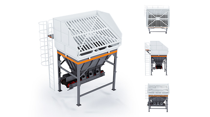 | 冷料系統(tǒng) 單倉容積12m3,采用內(nèi)振式結(jié)構(gòu),振動幅度大,保證卸料流暢。 |